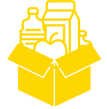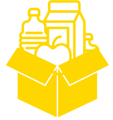 Kits alimentares padronizados ou personalizados conforme o público-alvo.